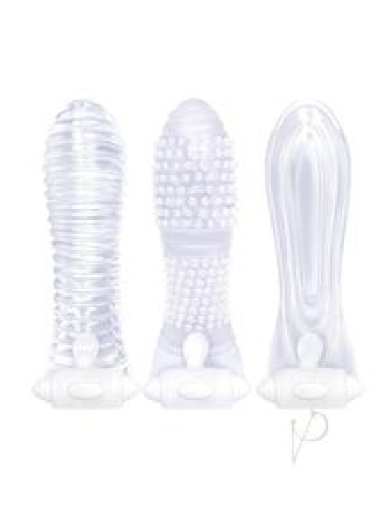 These cool looking extenders come in three unique styles, and each is a generous 5 1/2 long. In a sexy smokey gray, they swirl, nub, rib and more, and add size and sensation to sex, at a sensationally affordable price. This 3-Pack allows you and your partner to change amazingly textural sensations nightly...what could be more fun!