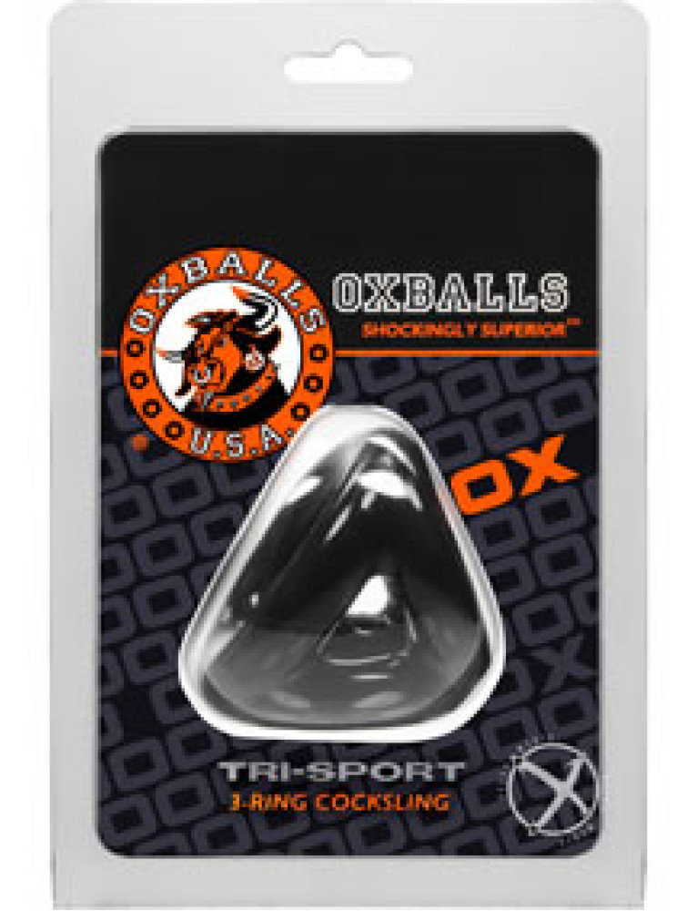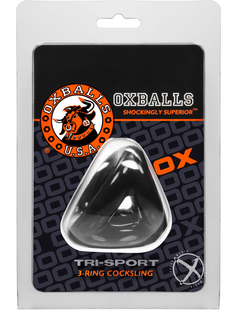 Its made up of 3 conjoined Cock Rings that grip your dick, balls, and the base of your shaftfeels just like a dudes hand wrapped snug around your swollen package.TRI-SPORT is modeled after traditional steel tri-Cock Rings but without all the discomfort and rigid materialno worrying about pinching metal or trying to wrestle your hard dick into a too tight steel contraption.It`s made from blubbery FLEX-TPR so it molds to your meat and stretches to fit your junk just right.TRI-SPORTs unique versatile design lets you choose how you wear ityou can pull your nuts through the wider opening and have more grip on your dick or mix it up if youve got a huge hog and tight balls or anything in between.Hell, you can even pull your sack through the sides and use it as a ball separator.The dual sensation of squeeze around your sweaty ballbag and bloated dick will have you launching load after load of thick creamy cumAnd for you go-go boys and show-offs out thereTRI-SPORT is perfect for beefing up your bulge in a skimpy jockstrap or skintight gear.