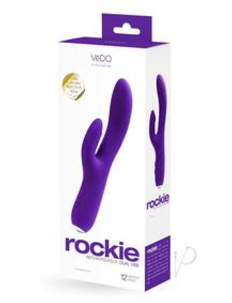 ROCKIE rechargeable dual vibe runs on two independent, extremely powerful motors. The perfectly curved shaft will tickle and delight your G-spot with its 12 vibrating functions, while the uniquely designed flexible tickler and nub tip with its 12 vibrating functions will tease and tantalize your clitoris. Completely submersible, this dual vibrator is up for any type of play. PRODUCT FEATURES Extremely powerful motor Rechargeable (USB cable included) 12 + 12 vibration modes Extremely quiet Velvety smooth silicone Designed for an easy ion Submersible Running time: 90 mins Dimensions: Height: 8.66 in. Max Diameter: 1.25 in.