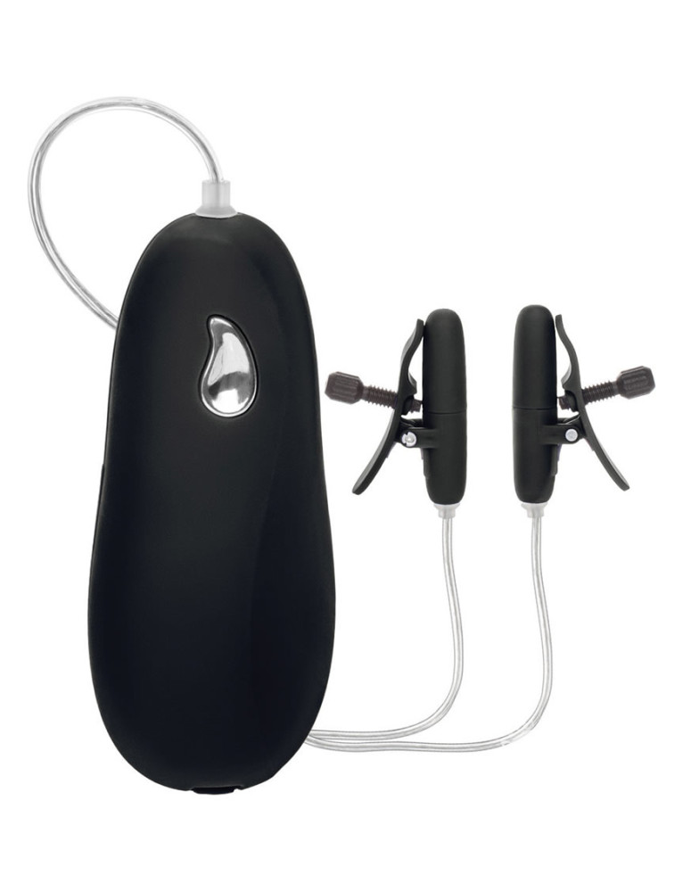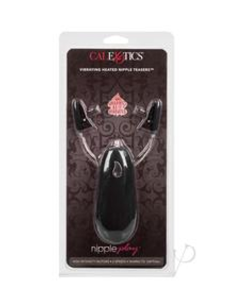 - Non-piercing, petite, adjustable nipple clamps that warm as they vibrate - Fully adjustable multi-use clamps - High intensity motor with 2-speed push-button control - Warms to an incredible 104F/40C - Silky smooth Satin Finish - ABS with PU Cote (controller, clamps) Nylon (screws) ABS with Silver Plating (button) Phthalate-Free PVC (cord) - Requires 2 AA Batteries Size 1.5 x 1/3.75cm x 2.5cm
