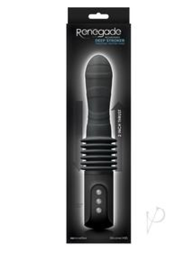 Long strokes for happy blokes, The Renegade Deep Stroker features an increased range of motion for profound thrusting and intense orgasmic pleasure. Powerful vibrations add to the explosive pleasures delivered by Renegade`s Deep Stroker. This powerful and rechargeable toy is made of body safe silicone and is suitable for use with all lubricants. Product Dimensions: 11.5 x 2.01 x 2.01 in. extended Package Dimensions: 13.8 x 3.2 x 2.4