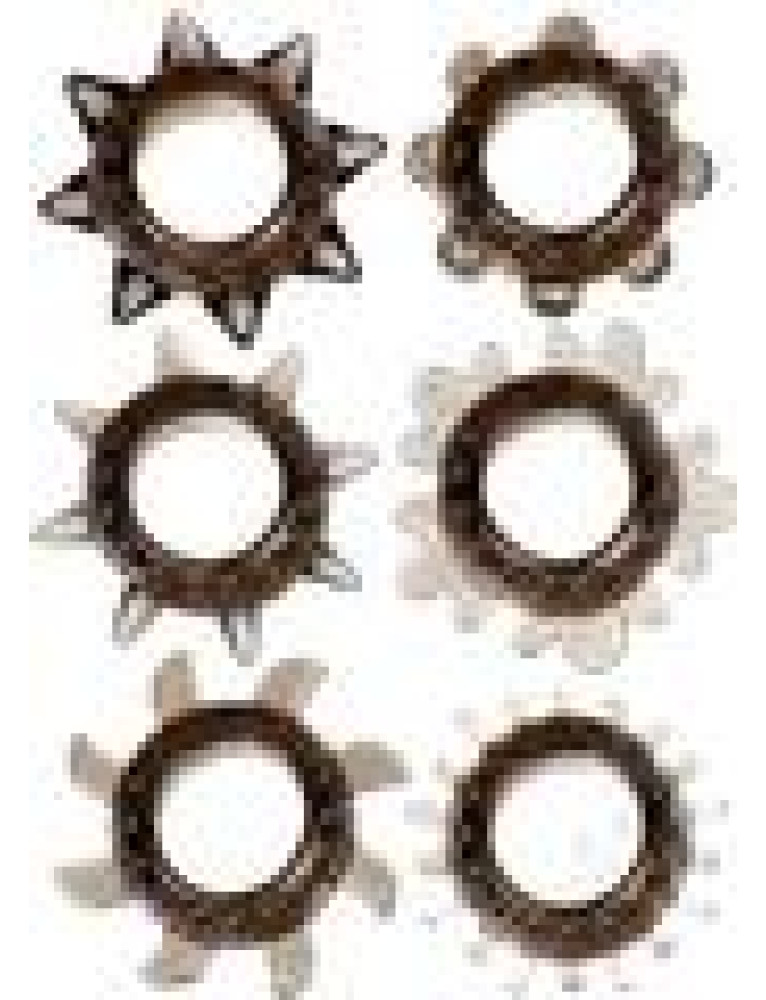 This super stretchy set of 6 Linx Tickler cock rings features an assorted range of rings with unique designs that stimulate where it counts for incredible intensity. These rings keep him firmer for longer and intensify his orgasm for maximum pleasure. They also stimulate his partner with a range of spikes, nubs, blades, petals and more.Each ring is designed to enhanced partner pleasure, as the textured detail ensures shared stimulation. These cock rings are free from latex and phthalates and are waterproof for play beyond the bedroom. Each ring measures 4cm in length plus extra stretch and they`re made from TPE that`s comfortable, stretchy and easy to put on and take off. These rings are safe for use with a water based lubricant and are perfect for couples that want to prolong pleasure and intensify orgasms. This set of 6 cock rings gives you plenty of choice when it comes to stimulation.