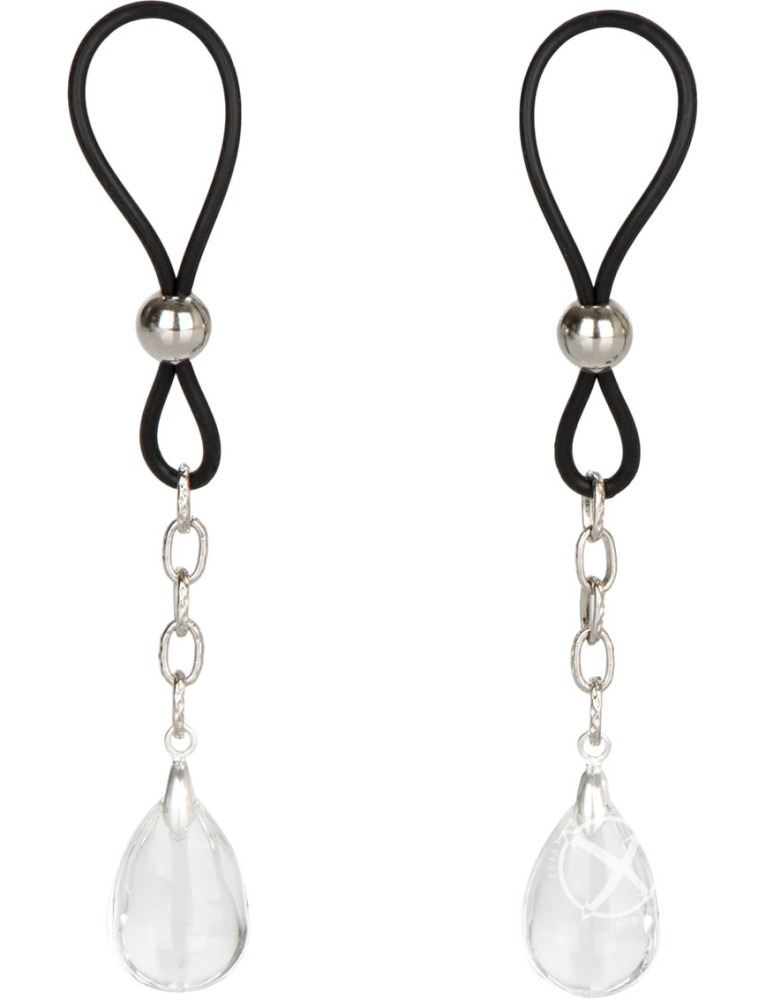 - Includes 2 fully adjustable nipple adornments - Soft and comfortable cinch design - Non-piercing, non-tarnishing, nickel-free - Nickel-Free Iron (chain, beads) - Silicone (loops) - Crystal (jewels) Size 2.25/5.75 cm (each loop) 4.5/11.5 cm (overall length)