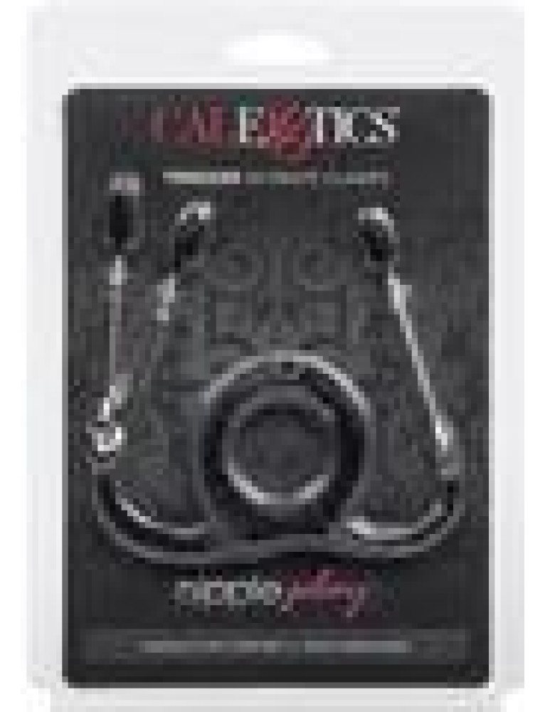Includes 3 fully adjustable multi-use clamps Unique cinch design with adjustable tension ring Soft, comfortable pads Sturdy high-quality dual chain for added sensuality Non-tarnishing, nickel-free Nickel-Free Iron (chains) Nickel-Free Iron and Nylon (clamps) Phthalate-Free PVC (pads) 2.75/7 cm (each clamp) 22.75/57.85 cm (overall length)