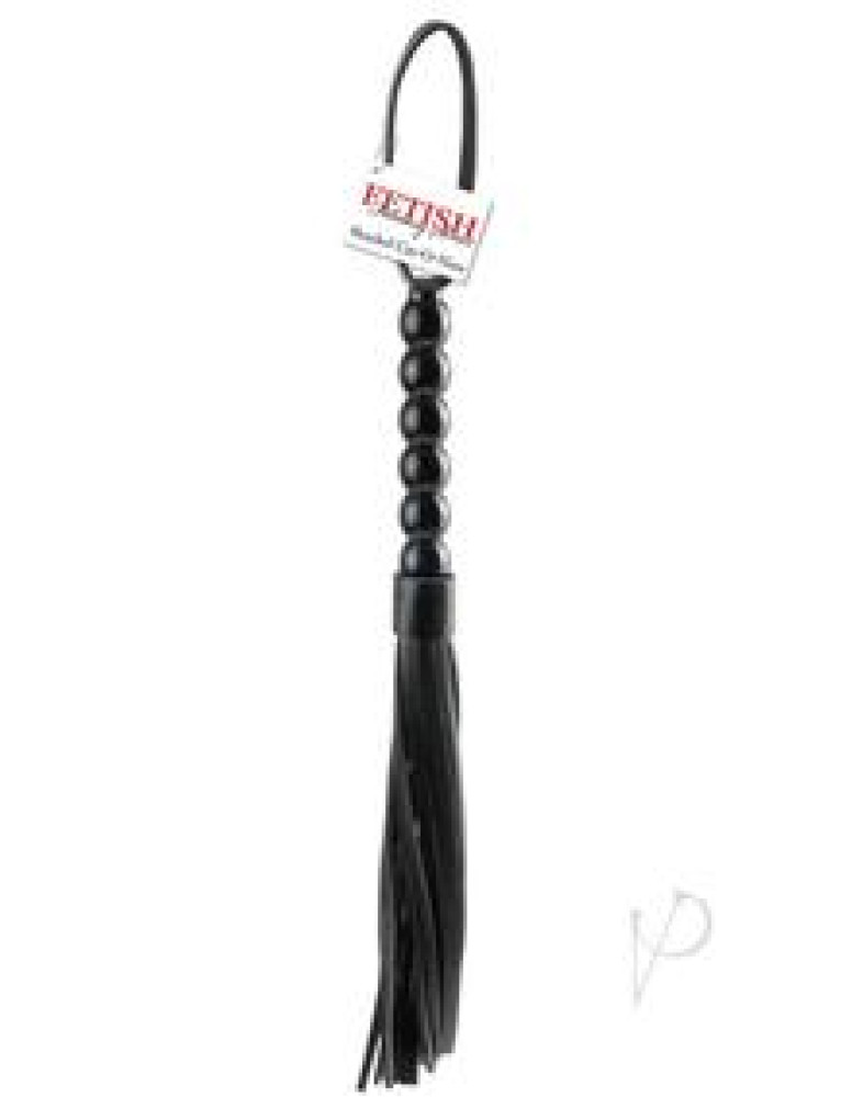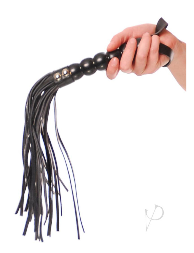 This black 18 cat is sure to make your submissive meee-OW! The wood bead handle has a handy strap and the tresses are an easy-to-use eight inches long. The strap and tresses are made of easy-to-clean, soft-backed vinyl whose tips provide just the right amount of sting. A welcomed addition to any toy bag!