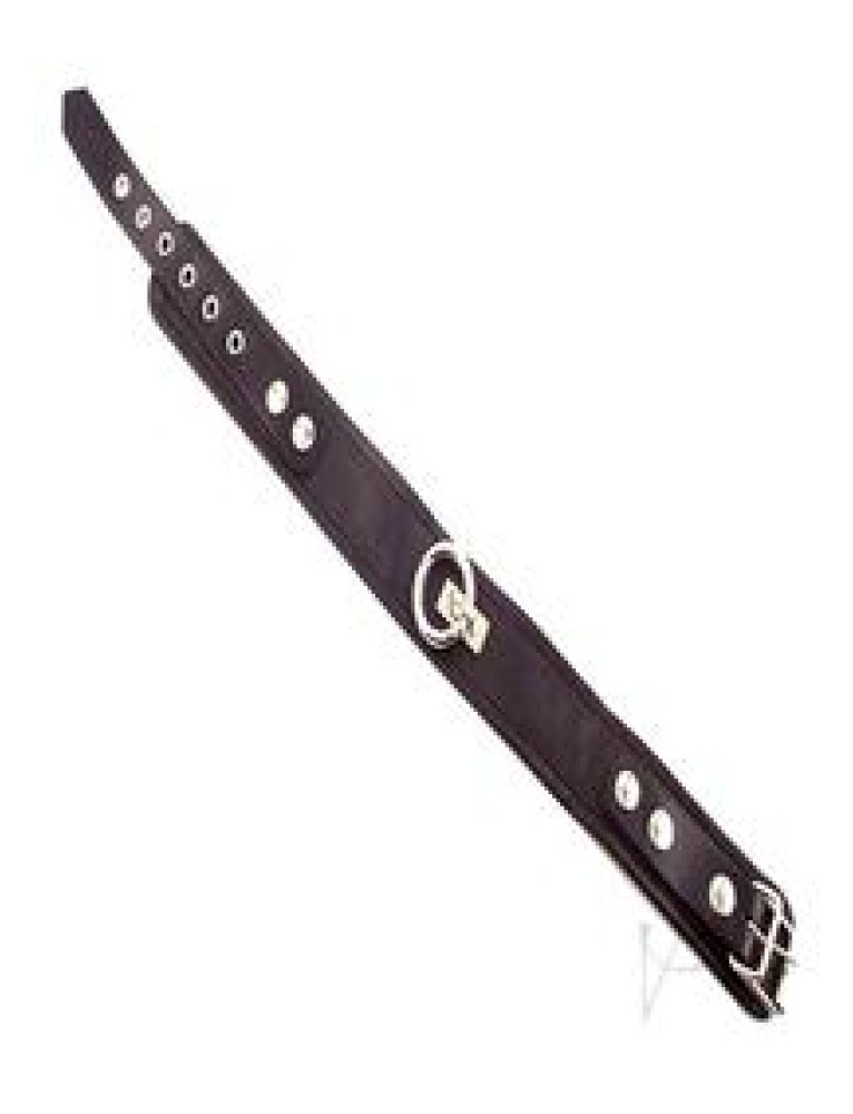 Leather collar with removable O-Ring. Includes a steel buckle with leather strap for adjustable fitting.