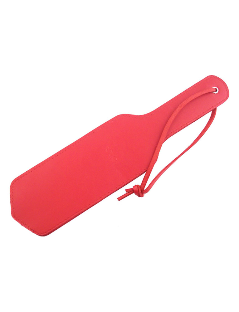 Double sided leather spanking paddle. Comes with leather strap handle to go around the wrist for control of the spank. Features: 13 inches long 3 inches wide 100% genuine leather