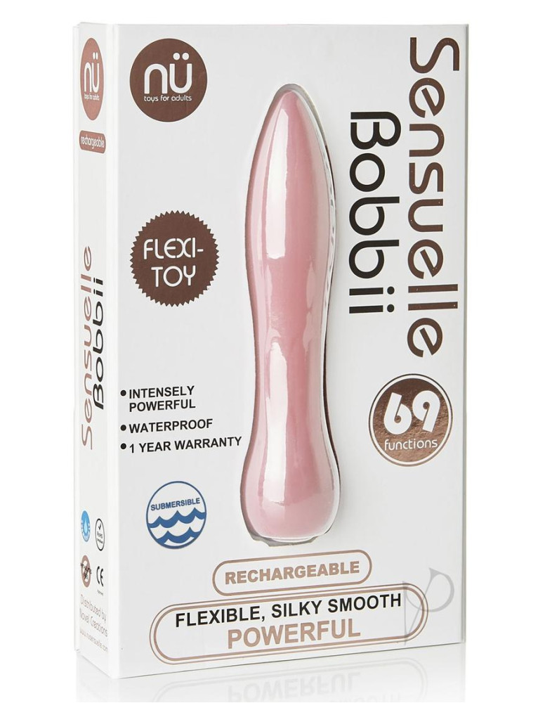 The NU Sensuelle Bobbii USB Rechargeable Bullet features 69 functions of deep throbbing and pulsating action. Plus this POWER-PACKED bullet is also flexible so you can adjust it to your unique shape. Ultra smooth, silky, sensual touch in a flexible design with 69 Powerful Functions. It`s everything you`ve come expect from NU Sensuelle, the leader in cutting edge vibration technology. - Material: Silicone - Waterproof: 100% Submersible - Phthalates Free - ROHS Approved CE Approved - USB Rechargeable from any USB Port - Charge Time: 4 Hours - Run Time: 1 Hour - Wall Charger Not Included (USB Cable Only)