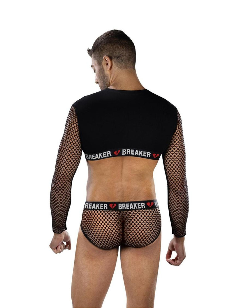 The Envy Menswear Heartbreaker Mesh Crop Top and Briefs Set is a bold, attitude-driven look made for confident self-expression. Featuring a cropped top with sheer mesh long sleeves, a solid front panel, and signature Breaker heart waistband detailing, this set delivers the perfect mix of edge and sex appeal. The matching briefs offer a supportive, body-hugging fit with breathable mesh accents that highlight your shape from every angle. Finished in classic black with striking heart graphics, this set is ideal for club nights, pride events, performances, or whenever you`re ready to break hearts and own the moment.