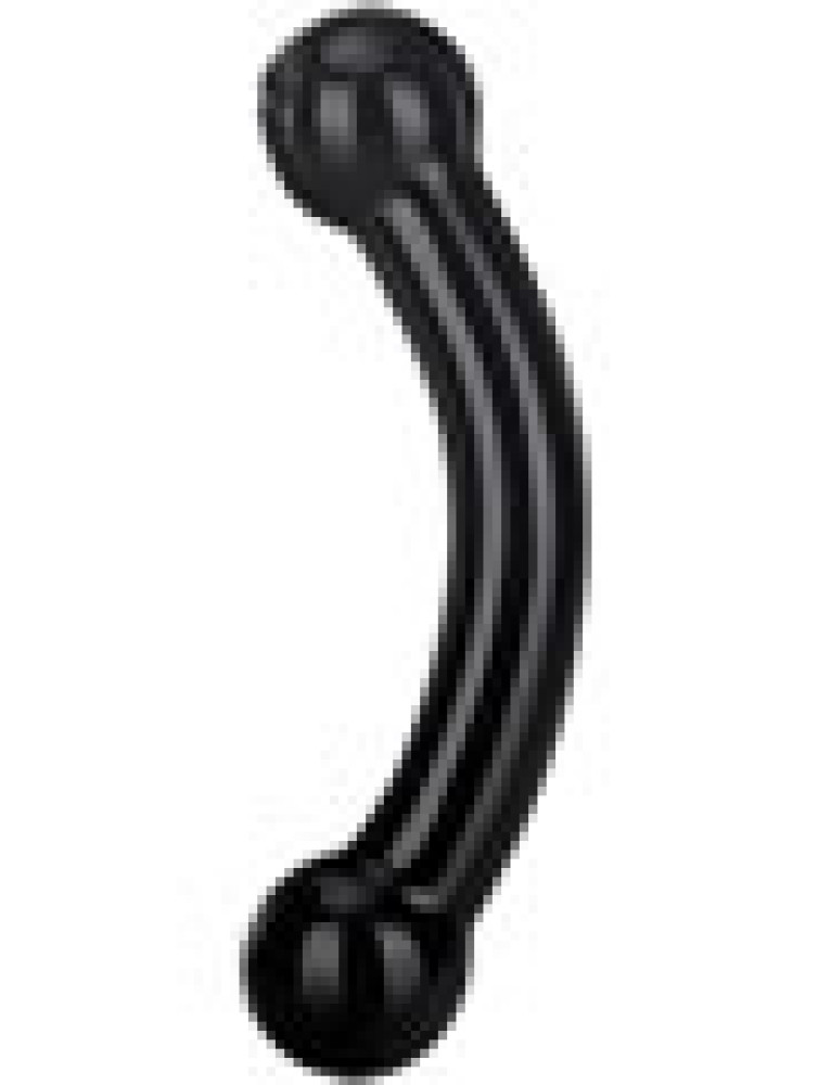 Behold the sleek, sensual beauty of black glass. This double-header features bulbous balls at both ends for deep personal pleasure or erotic couples play. Fracture-resistant and hypoallergenic, this toy can be easily cleaned. Retains heat and cold for increased stimulation. Compatible with all lubricants.