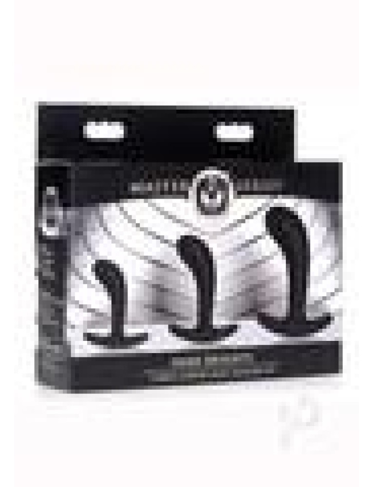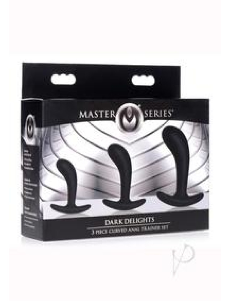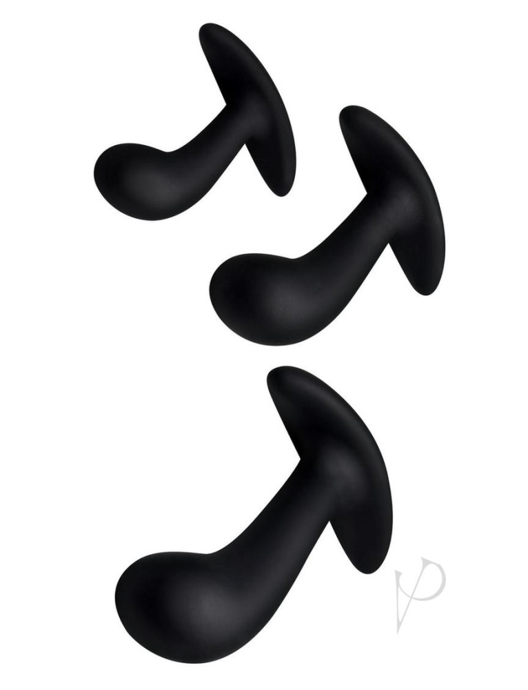 Curve into your backdoor with this delightful 3-piece of anal pleasure. This trainer set includes 3 different sized plugs for backdoor beginners and veterans alike to enjoy warm up with the smallest plug and train your way to the biggest when you feel you`re ready.Made with premium silky smooth silicone that is phthalate and body safe so you can train your holes with no worries. The velvety exterior is a dream to squeeze your holes on, and is perfect for entry level anal players exploring new ways to play.The slight curve is designed to pinpoint your favorite spots so you can easily stimulate during play, Use these with your partner to practice clear communication and explore your anal desires!The ergonomic base neck is slim and comfortable so you can hit your deepest spots without irritating the entrance of your hole.Compatible with water based lubricants only. Avoid use with silicone or oil based lubes to prolong the life of this trainer set. Measurements:Small Measurements: Overall length 3.1 inches, able length 3 inches, widest diameter 0.8 inches (Circumference 2.513)Medium Measurements: Overall length 3.7 inches, able length 3.4 inches, widest diameter 1.1 inches (Circumference 3.455) Large Measurements: Overall length 5 inches, able length 4.5 inches, widest diameter 1.45 inches  (Circumference 4.555) Care instructions: Clean and sanitize before and after use with warm water and mild soap or toy cleaner. Avoid use with silicone or oil based lubricants, these plugs are compatible with water based lube only. Materials: Phthalate Free Silicone Color: Black