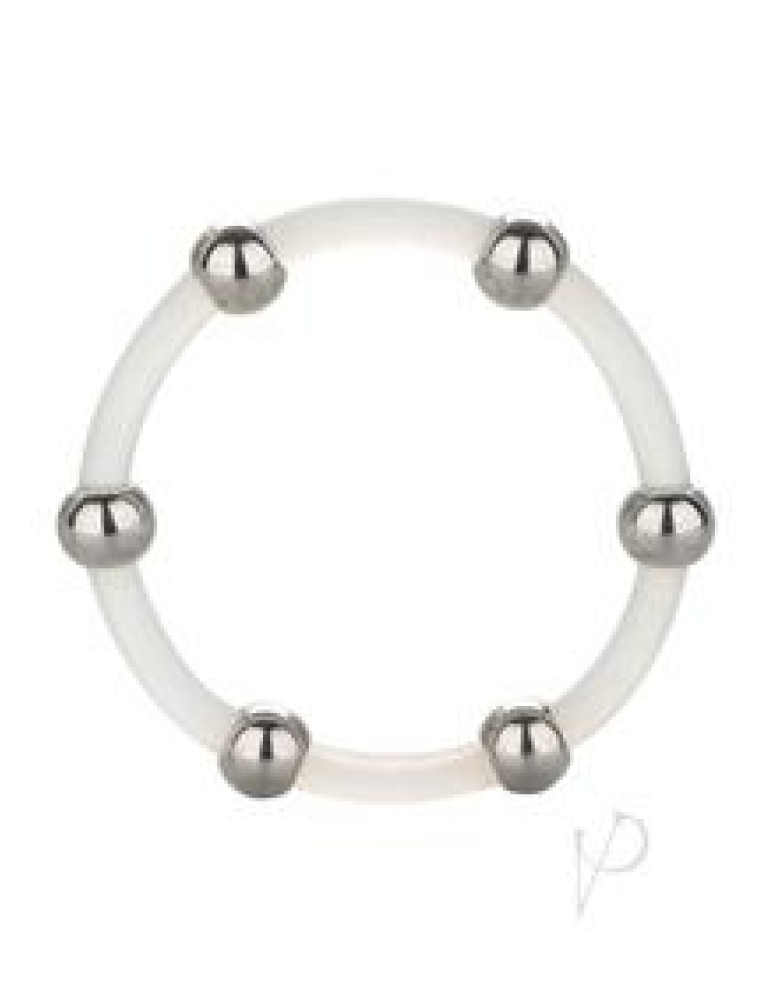 FEATURES: Stretchy Silicone enhancer ring with steel stimulation beads Provides strong and sturdy support Thick and durable Beaded for intense pleasure Dimensions: Extra Large Ring Diameter: 2 in. Package: 0.75 x 3.5 x 5.25 in.
