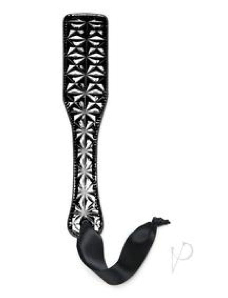 Diamonds are a submissive`s best friends as the delectable sensation of this paddle hits them on their backside. Indulge in the delightful pleasure of this diamond-textured paddle. Lightly padded, this paddle features a diamond pattern that not only stunningly shines, but also delivers a unique sensation with every smack. Featuring an attached sturdy ribbon that wraps around the wrist, this gorgeous paddle puts you in control of the fun.