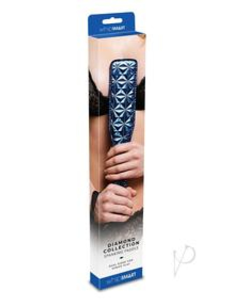 Diamonds are a submissive`s best friends as the delectable sensation of this paddle hits them on their backside. Indulge in the delightful pleasure of this diamond-textured paddle. Lightly padded, this paddle features a diamond pattern that not only stunningly shines, but also delivers a unique sensation with every smack. Featuring an attached sturdy ribbon that wraps around the wrist, this gorgeous paddle puts you in control of the fun.