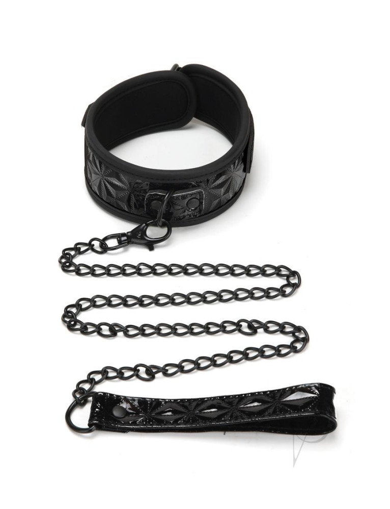 Lead your sexy sub to pleasure with a gorgeous gleaming collar and leash. Take your sexy submissive for a walk on the wild side with the Diamond Collar and Leash. A dazzling diamond pattern makes this accessory shine as a stylish must-have for those that like to let their imagination run wild. D-rings connect the collar and the leash to the attached chain, offering you various options for play.