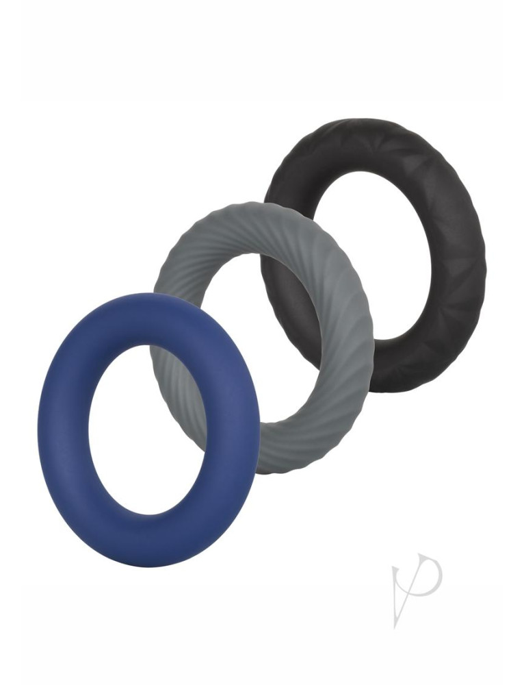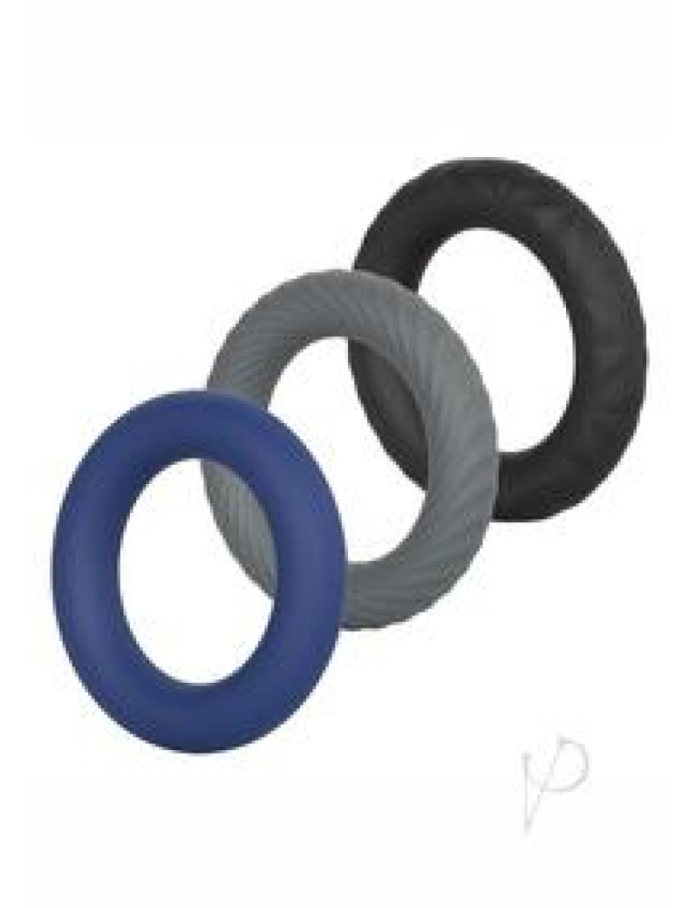 Set of 3 premium Ultra-Soft Silicone support rings Comfortable, durable and extremely stretchy Smooth, textured and ridged designs for powerful pleasure Dimensions: Ring Diameter: 1.5 in. Package: 7 x 5.25 x 2 in.