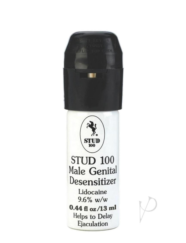 STUD 100® Male Genital Desensitizer is a must-have item in your Sexual Health treasure chest. On the market since 1970, it is specially formulated to help in cases of premature or over-rapid ejaculation. STUD 100® contains Lidocaine USP 9.6% w/w (approx. 10mg per spray) and meets all requirements outlined by the FDA`s Monograph on Male Genital Desensitizers. For nearly 50 years, STUD 100® has been helping couples to prolong the moment. Millions of cans sold. Contains approx. 120 sprays. Metered pump spray for accurate dosage. Discreet size can.