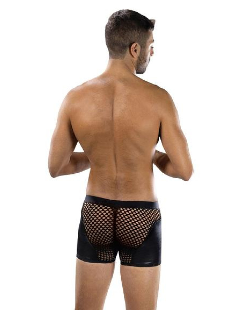 Introduce an electrifying edge to your underwear collection with the Sheer Contrast Boxer Briefs. This daring men`s piece masterfully blends bold design with a provocative aesthetic, featuring a lustrous, form-fitting front pouch that highlights and defines, seamlessly transitioning into sleek, solid side panels. The true allure lies in the striking contrast of open-hole mesh fabric that forms the outer thigh and back, offering tantalizing glimpses of skin and an undeniably sexy appeal. Crafted for both comfort and visual impact, these boxer briefs are designed to hug your physique, ensuring a confident and unforgettable statement whether for intimate moments or as a bold foundation for any outfit.