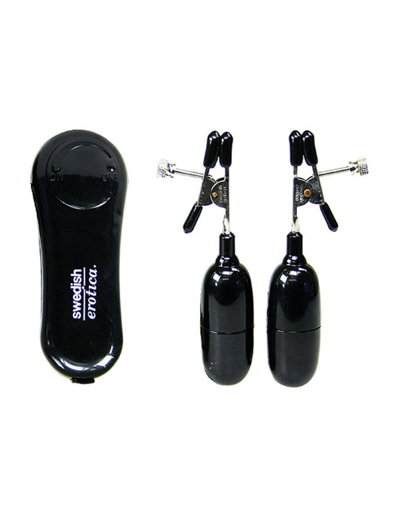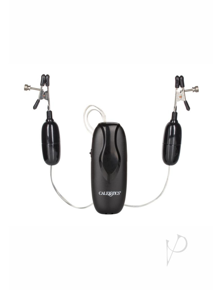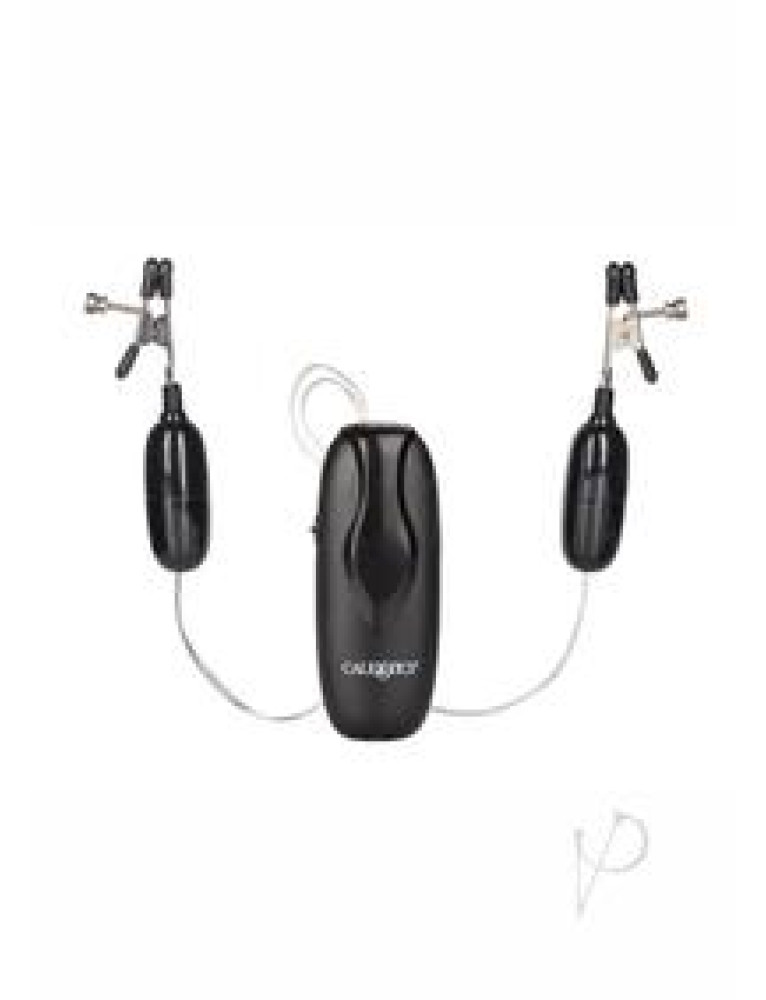 Tease your nipples with these outrageously powerful stimulators. Prepare yourself for the reverberating pleasures that this highly charged arouser will produce. Activate the vibrating rubber dipped clamps and adjustable tension. 2 AA batteries (not included).