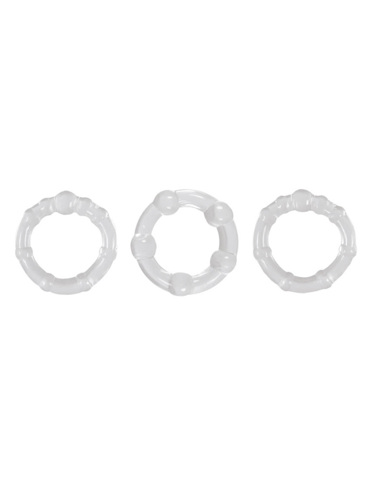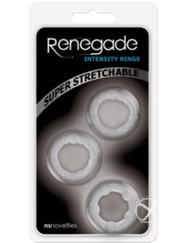 The Intensity Rings are 3 different clear TPE super stretchy rings designed for maximum pleasure for you and your partner. Suitable for all lubricants, these low-priced rings are a sure hit.