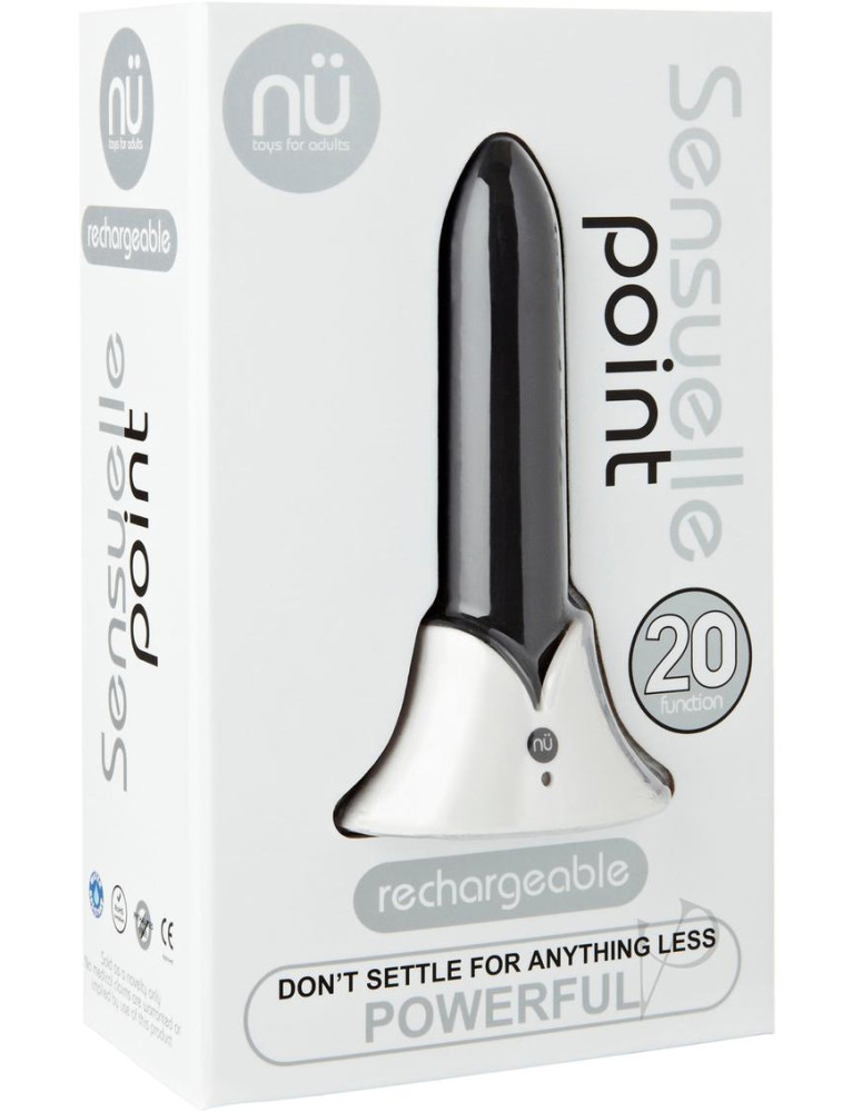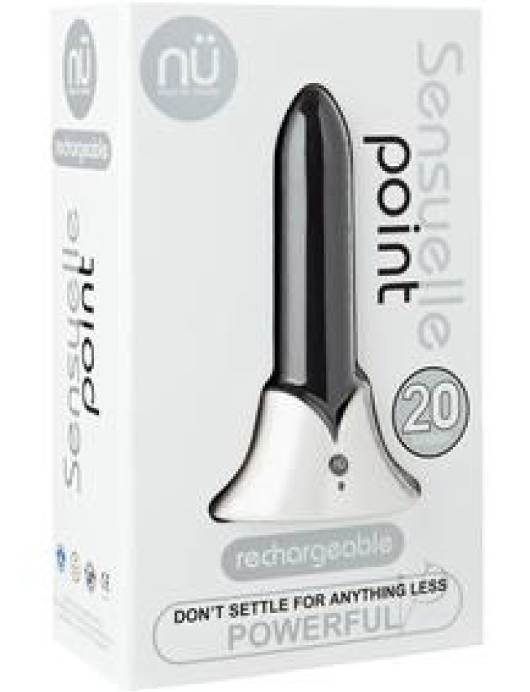 The NU generation in Personal StimulationGet straight to The Point.Dont settle for anything less powerful!FINALLY! A bullet that has it all Amazingly Powerful, 20 functions, sensual touch AND rechargeable!The Sensuelle Point is twice dipped in silicone, to give you an ultra smooth, silky, sensual feel. It is beautiful to touch, but is also is mind-blowing intense.Its not just a bullet, its a new breed of bullet that will redefine what a good bullet is.Simply put, its a Super Bullet. Unlike any other bullet youve ever touched!Its a phenomenon to be marveled at and WILL cause a sensation.One touch of this incredible bullet is all it will take!Experience the Sensuelle Point Bullet.FULLY RECHARGEABLE USING EITHER AN ELECTRICAL POINT OR USB (USING A COMPUTER)