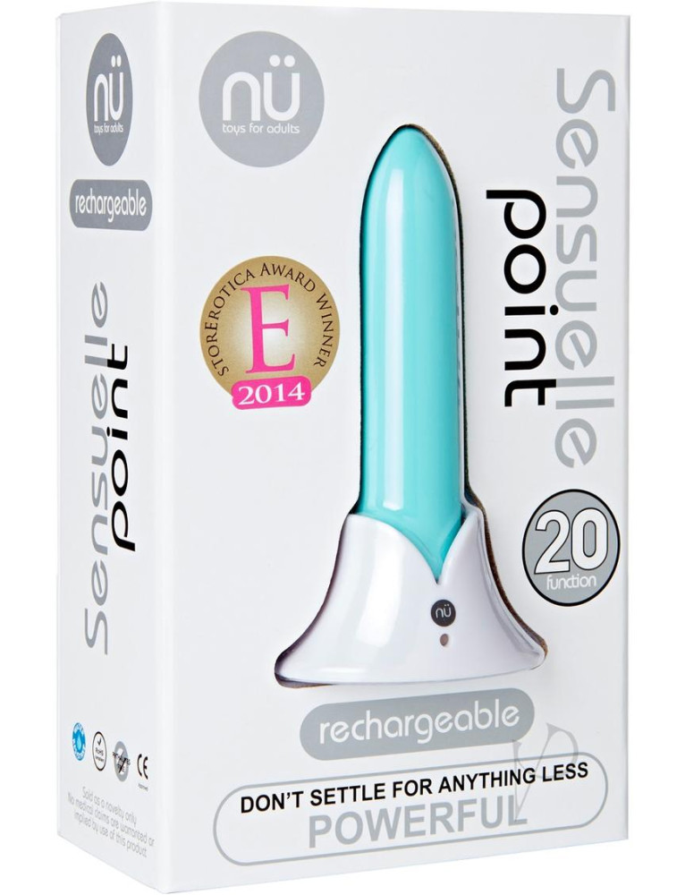 The NU generation in Personal StimulationGet straight to The Point.Dont settle for anything less powerful!FINALLY! A bullet that has it all Amazingly Powerful, 20 functions, sensual touch AND rechargeable!The Sensuelle Point is twice dipped in silicone, to give you an ultra smooth, silky, sensual feel. It is beautiful to touch, but is also is mind-blowing intense.Its not just a bullet, its a new breed of bullet that will redefine what a good bullet is.Simply put, its a Super Bullet. Unlike any other bullet youve ever touched!Its a phenomenon to be marveled at and WILL cause a sensation.One touch of this incredible bullet is all it will take!Experience the Sensuelle Point Bullet.FULLY RECHARGEABLE USING EITHER AN ELECTRICAL POINT OR USB (USING A COMPUTER)