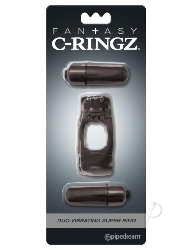Erection support, amazing vibrations, and explosive orgasms! Prolong the fun and make pleasure last with this beginner-friendly Duo-Vibrating Super Ring! This fun teaser will produce explosive results and is the perfect add-on to any spontaneous encounter! Two powerful bullets provide amazing vibrations for your partner, while the super-stretchy ring helps maintain thicker, harder erections. Try the ring in the shower and turn bath time into play time! With a vibrating bullet on the top and bottom of the ring, both partners will be amazed by the incredible sensations! This incredible ring is ready to go right out of the package! Each vibrating bullet is powered by three AG13/LR44 batteries (included). To power the bullets on for the first time, remove the paper liners and make sure the caps are screwed on tightly. Item Width: 2.32 in. - ( 59 mm ) Item Height: 2.97 in. - ( 75 mm )