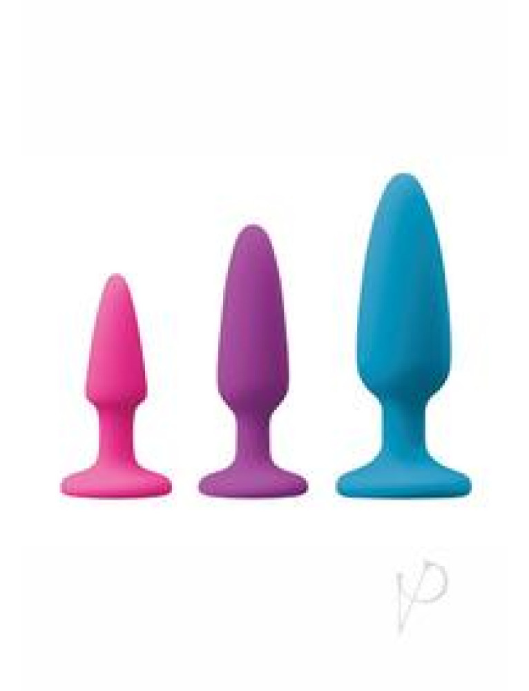 Colours Trainer Kit`s collection of 3 fun and colorful plugs is made of liquid platinum silicone. The smooth and pliable plugs feature an elegant and supportive base, long neck and tapered tip for easy ion. Available in varied colors and sizes. Suitable with all lubricants. Product Dimensions: S: 3.54 x 1.77 x 1.77 in. M: 4.37 x 1.77 x 1.77 in. L: 5.35 x 2.2 x 2.2 in. Insertable Dimensions: S: 2.64 x .96 in. M: 3.23 x 1.18 in. L: 3.94 x 1.54 in. Package Dimensions:7.76 x 7.91 x 2.64