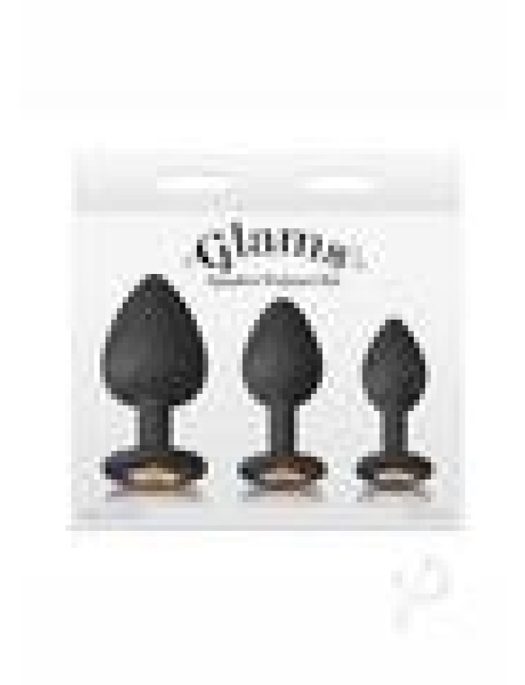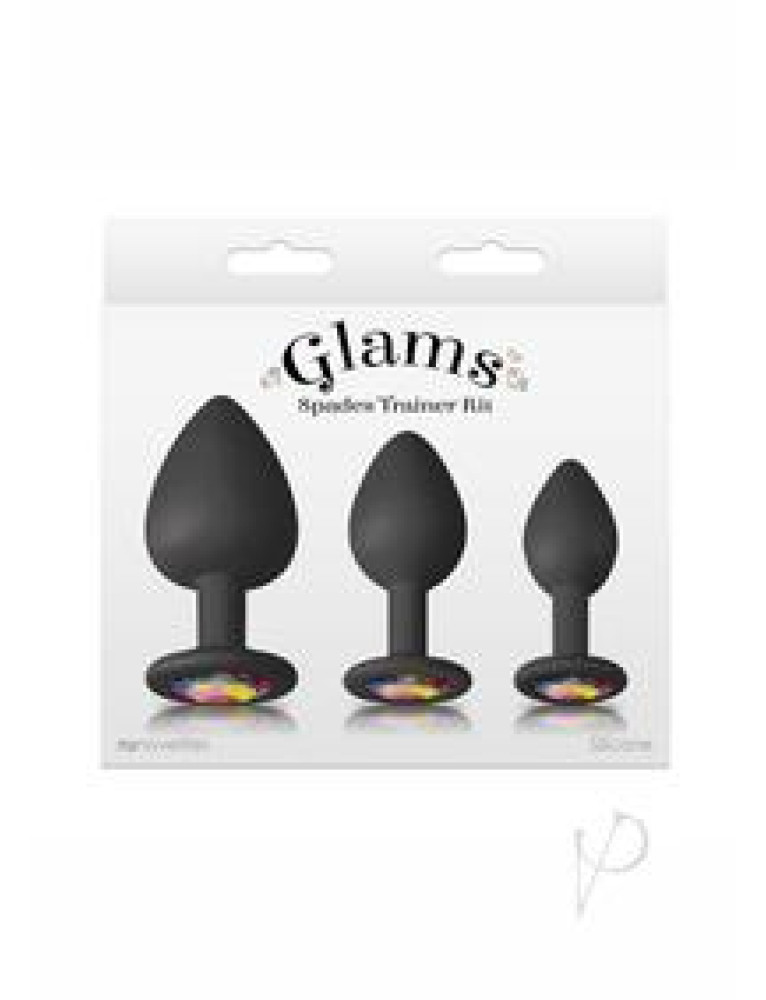 Enjoy backdoor bling with Glam`s three-piece set of bejeweled silicone plugs. Elegantly crafted, each is shaped for comfort and fun and adorned with a sparkling rainbow gem. Suitable with all lubricants. Product Dimensions: S: 2.8 x 1.26 x 1.26 in. M: 3.19 x 1.42 x 1.42 in. L: 3.74 x 1.65 x 1.65 in. Insertable Dimensions: S: 1.89 x 1.06 in. M: 2.36 x 1.38 in. L: 2.99 x 1.65 in. Package Dimensions: 6.1 x 6.34 x 2.01 in.