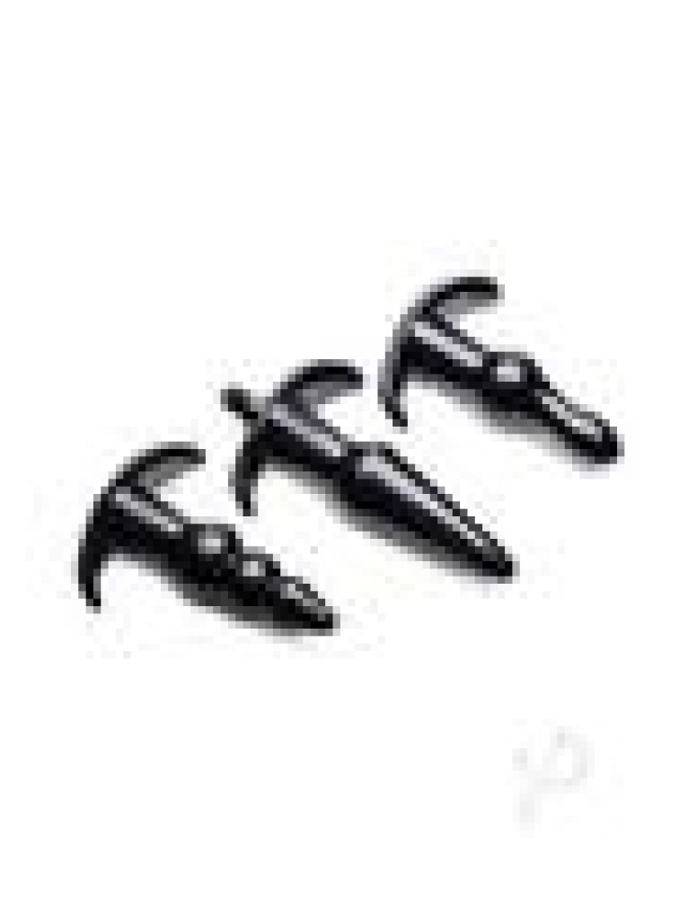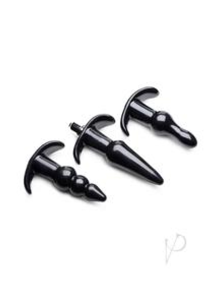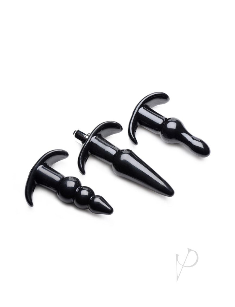 A simple but comprehensive set for the anal curious, this 4 piece kit includes a classically-shaped plug, a smoothly-bulbed design, a ribbed style reminiscent of anal beads, and a one-speed bullet vibe that slips easily into all three of them. Each plug is sleek, with just the right amount of give, and tapered for your comfort. Just slide the petite peanut vibrator into the base of the plug you wish to play with, whether you feel like a classic shape, an exciting bulge, or three pops of pleasure. The easy-to-use button operation makes playtime hassle-free and the contoured bases keep each plug safely and comfortably in place between your cheeks. This firm, yet flexible material is phthalate-free and compatible with water-based and silicone lubricants. The bullet is even waterproof for easy cleaning or use in the shower.Measurements: Bulb plug is 4.1 inches in total length, 3.75 inches able length, 1.2 inches maximum diameter, .6 inches at minimum diameter.Ribbed plug is 4.3 inches in total length, 3.9 inches able length, 1.2 inches maximum diameter, .7 inches at minimum diameter.Classic plug is 4.8 inches in total length, 4.5 inches able length, 1.25 inches maximum diameter, .75 inches minimum diameter.Bullet is 2.3 inches in length, .7 inches in width. Material:Â TPE, ABS PlasticColor:Â BlackNote:Â Requires 3 LR44 batteries, included
