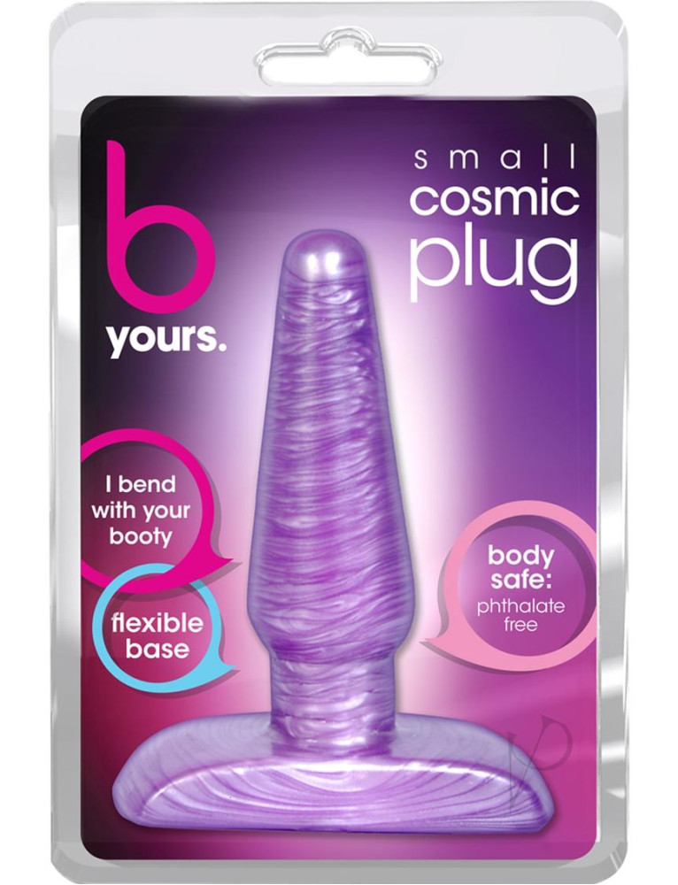 The Small Cosmic Plug is perfect for anal novices! Its swirly purple pattern is sweet and sexy. Soft enough for comfortable, gentle use but firm enough for easy ion. The wide, flexible base below a narrower neck makes it safe and secure. Made of body safe PVC, Cosmic Plugs are phthalate and latex free. The Small Cosmic Plug measures 4.25 inches in height, with a girth of 1.35 inches and able length of 3.6 inches. Easy to clean. Simply wash with water and antibacterial soap.
