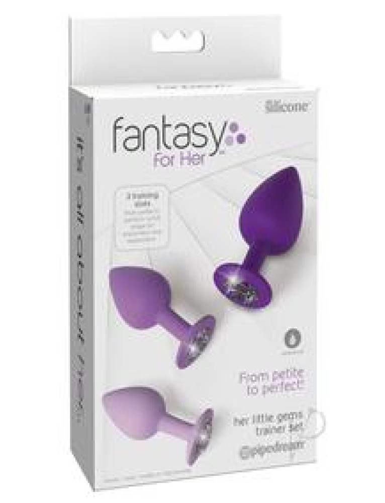 - Heightened Flexibility - Comfortable, bendable plugs hug delicate curves and contours. - Enhance Sex Play - Wear during sex play to add an entirely new dimension of pleasure to sexual activities. - 3 Training Sizes - From petite to perfecta full range for enjoyment and exploration. - Ultra-Hygienic Elite Silicone - Incredibly smooth silicone warms to your body temperature. - Sparkling Jewel Bases - Provide dazzling visual stimulation. Dimensions: Small Plug Insertable Length: 2.5 in. Total Length: 2.8 in. Diameter: 1.1 in. Med. Plug Insertable Length: 2.9 in. Total Length: 3.2 in. Diameter: 1.4 in. Large Plug Insertable Length: 3.2 in. Total Length: 3.8 in. Diameter: 1.7 in. Package Depth: 2 in. Package Width: 4.5 in. Package Height: 8 in.