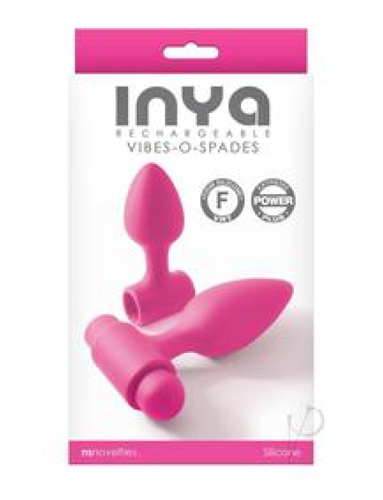 INYA`s VibesOSpades mini kit delivers quality, performance and versatility with two premium designed silicone anal toys with a shared mini vibrator. Water-resistant and rechargeable, mini vibrator and plugs are compatible with all lubricants. Product Dimensions: S: 3.19 x 1.38 x 1.18 in. M: 4.09 x 1.38 x 1.26 in. B: 2.48 x .71 x .71 in. Package Dimensions: 7.36 x 3.98 x 1.85 in.