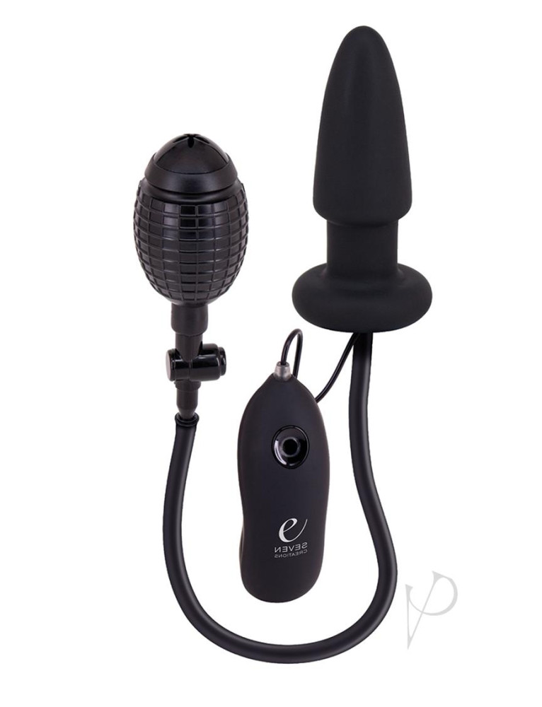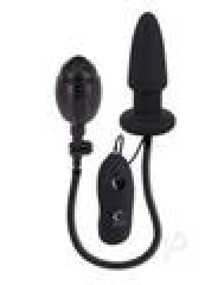 7 Functions Inflatable and vibrates Expandable Butt Plug expands to 2 3/4 in. Air release button Phthalate free Waterproof Materials: PVC, Silicone, ABS 2 AAA batteries (not included) Dimensions: Buttplug Total Length: 5 in. Insertable Length: 4 in. Diameter: 4 in. Expands to 2 3/4 in. Remote Length: 3 3/4 in. Tube Length: 16 in.