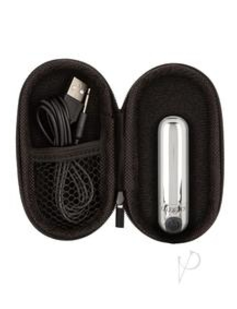 Discreet and powerful stimulator with compact travel case 10 intense functions of vibration, pulsation and escalation Easy push-button control hold for 3 seconds to turn on or off USB rechargeable charging cord included Complete charge in 2 hours Runs 45 minutes on high speed and 1 hour on low speed Dimensions: Bullet: 3 x .75 in. Case: 4.75 x 2.5 in. Package: 1.75 x 6.25 x 8 in.
